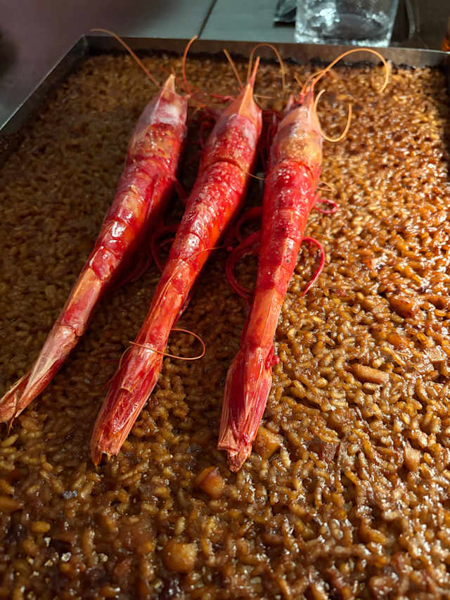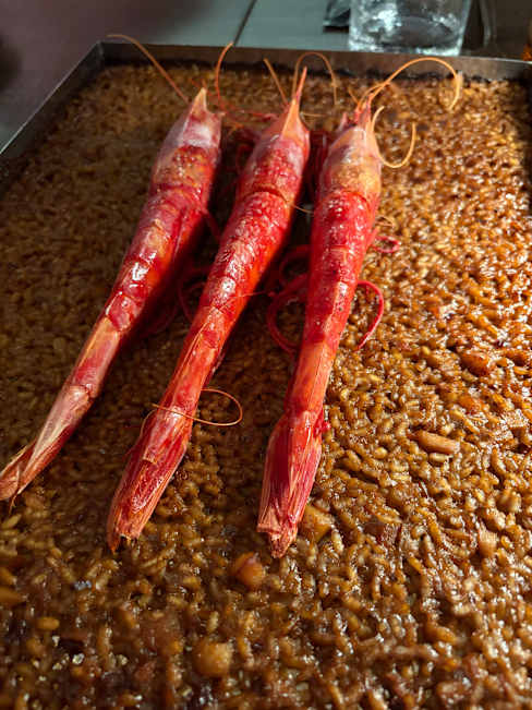 Amazing rice with giant red shrimp and cooked fish