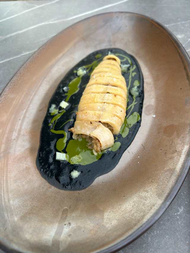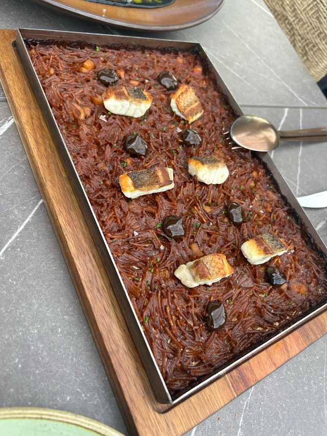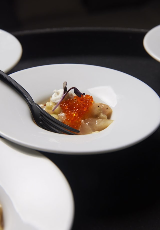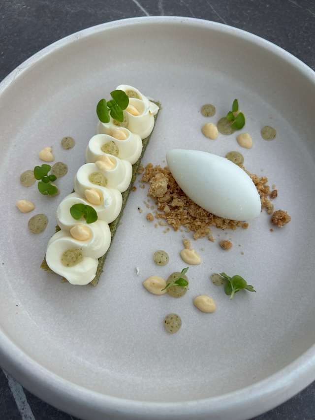 Acompañado de brioche con mantequilla, crema agria y pistachos.