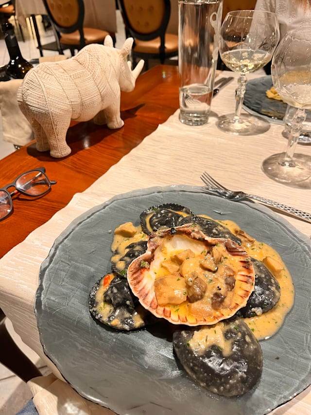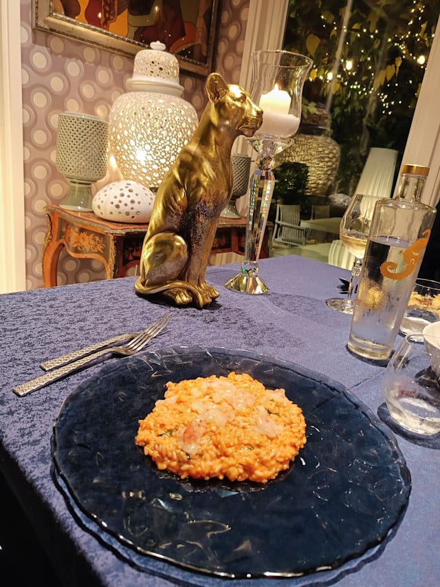 6.5/10Great research for the internal design.. but you are not offered to be sitting inside(restaurant as almost empty), but immediately escorted outside which was extremely hot and not an enjoyable dinner. Food wise plates are beautiful but prepared while in advance and is loosing the freshness of the fish talking in relation to the raw fish plate. Amazing carbonara di mare and pistachio tiramisu.