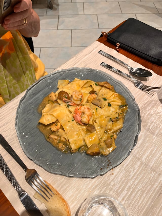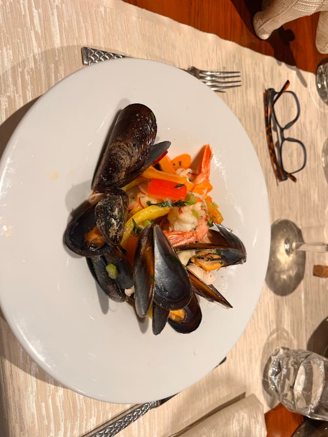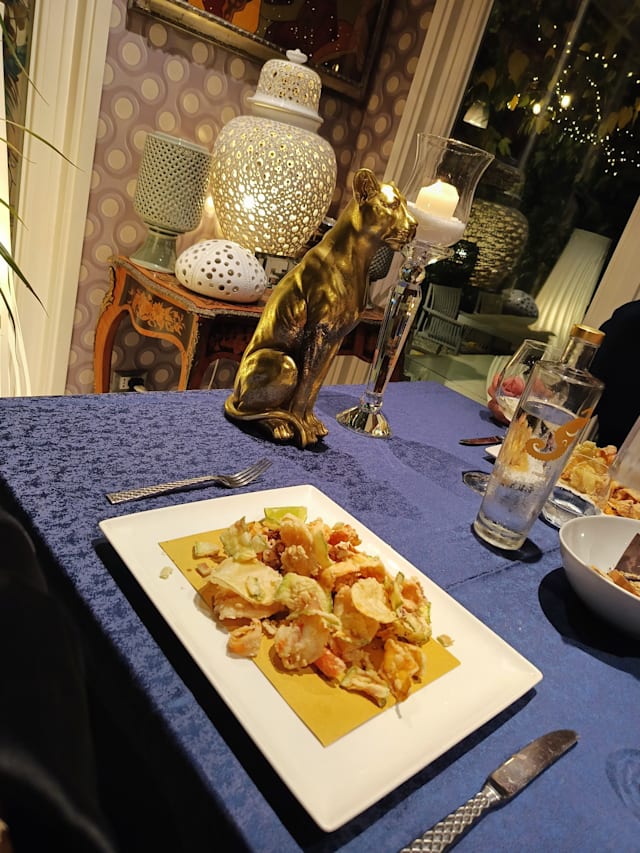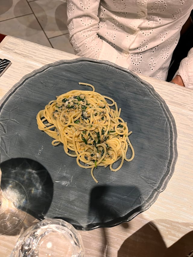 8.5/10Amazing raw seafood and seafood tartare, one of the best I have ever eaten in a great location in front of the beach. Frittura and dessert were very good, the pastas we had were not up to the standard for the full price The interior of the restaurant is extremely curated and you can see the effort in creating a luxurious ambience. The service was good and quick and the owner was very welcoming with us. Without the fork discount I would say it is a pricey restaurant. Again if you like raw seafood, is a must.and you pay for the high quality of the ingredients.