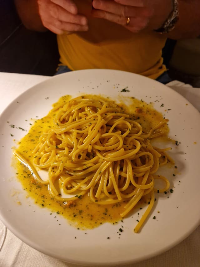 6.5/10We found a rock (yes, a stone) inside the spaghetti. The waiter proposed us to make again the dish, but it was almost finished, whatever. In the end at the desk, the owner tried to make funny nonsense jokes about about wich coin value we wanted to pay the dinner, and not even the rock laughed. Ps: the prices of oysters were higher than what was written in the menu.