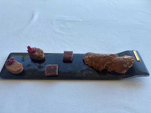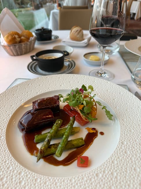 7.5/10The white wine parings were all bad. Very grassy and pedestrian. My wife’s entree was to be duck at medium temp. It Came out rare and so tough you had to saw through it. It mouthed like buffalo. Beautiful restaurant, excellent service, terrible wines, and a failed entree