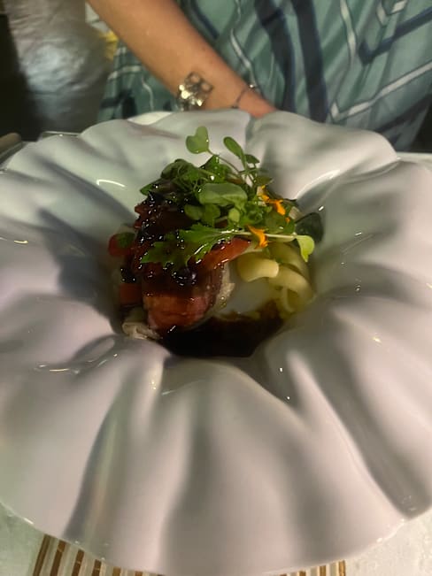 6.5/10If you have a TON of money to throw away, go for it! It was $600+ for two of us for dinner. While the beginning started off great, and the wine pairing was good, the main course was not. I ordered the lamb chops and what I got was ground up lamb wrapped in something. It was supposed to come with potatoes and what I got wasn’t recognized as a potato. My husband ordered the steak medium rare and it was not even rare. Seemed barely cooked. At that point we just wanted to move forward and finish the next 4 courses. There were only 3 tables being served on a Friday night.