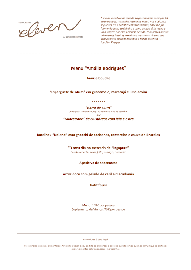 9.5/10+6I went to the Eleven restaurant with friends and we opted for the “Eleven” tasting menu with wine pairings. When we arrived, we were taken to the table and stood there kind of “abandoned” for almost 10 or 15 minutes until we were actually served. But after that, the service was very good and the food was very good too. In the end, what I missed, compared to other restaurants with tasting menus I’ve been to, was receiving a copy of the wine menu. But it was very good, and the view from the restaurant over the park in Lisbon is very beautiful too!
