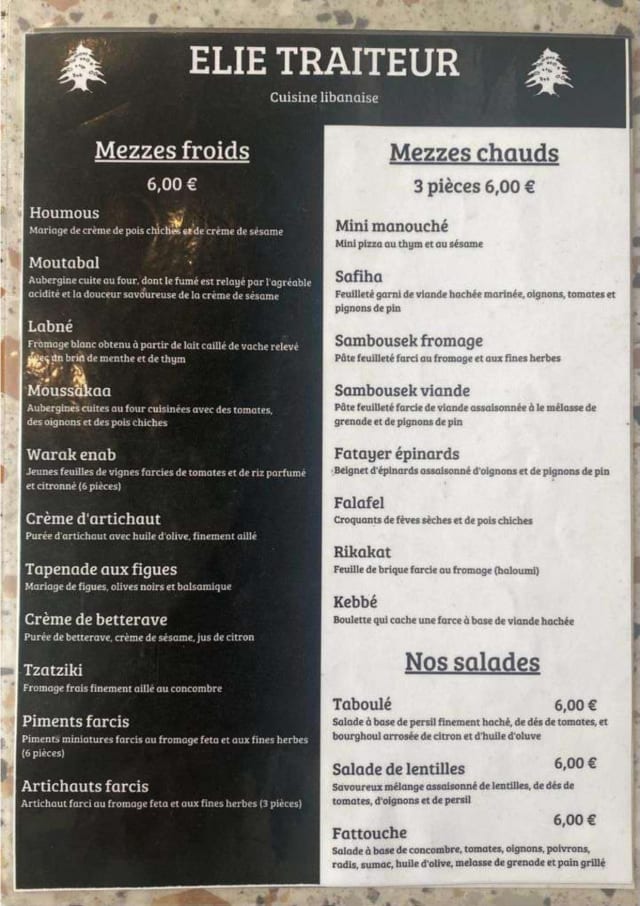 9.5/10So happy we found this restaurant. The neighborhood is a bustling location and packed with ambiance. The food was freshly made and full of exceptional tastes. The young man who waited on us was incredibly friendly and we were so thankful his english was as fluent as it was. The restaurant itself is very small and compact and seating is a bit cramped- expected for a small Parisian cafe. It's worth it for the ambiance, the value for the money and the real Lebanese flavors.
