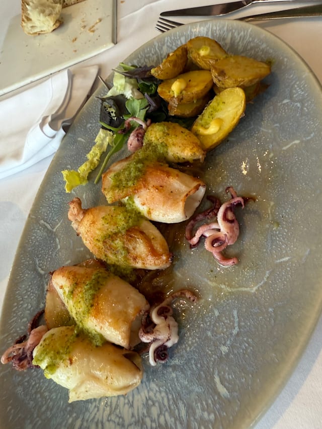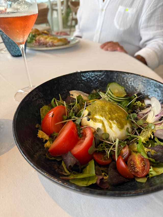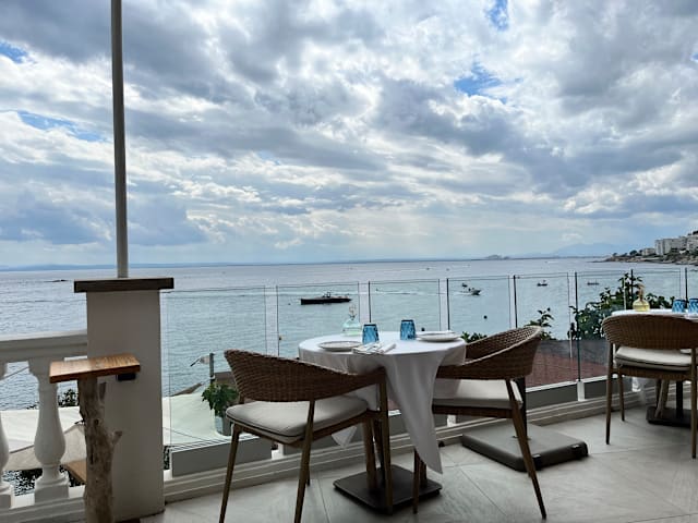 6/10Beautiful location but the food does not match and is overpriced for what you get and we say this coming from Switzerland which is notoriously expensive. We ordered the octopus starter to share and the sea bass and sole for mains. The octopus tasted as though it was previously frozen and was unseasoned and chewy, sea bass was also tasteless (as opposed to the briny sea flavor one would expect) and the sole was smothered in an overpowering sauce that was advertised as being “Mediterranean” but tasted of old seafood. We didn’t even bother with dessert. The only part of the meal we enjoyed was the local wine which was recommended to us by the staff. View is also stunning but the food needs to improve significantly.