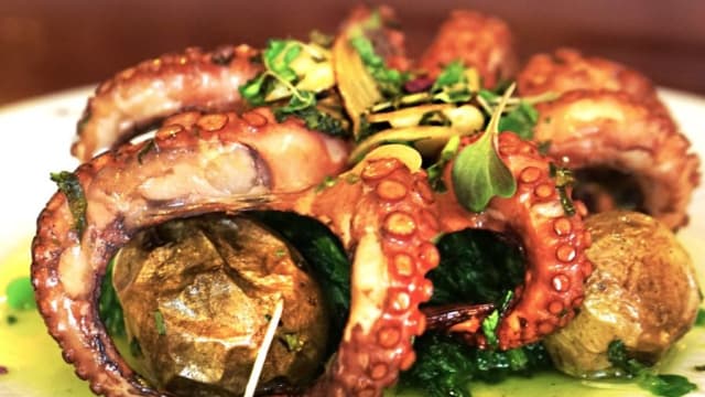 Bacalhau, esparregado de grelos, batata a murro, alho e azeite