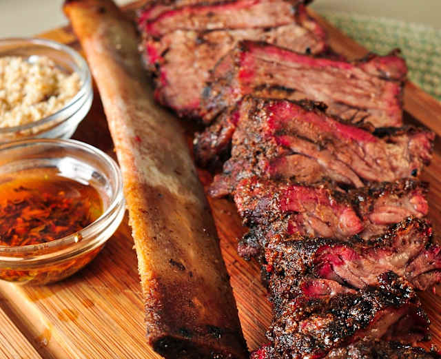 - Costela bovina fumada lentamente, macia e suculenta. (Servidos com farofa, chimichurri e 2 acompanhamentos)