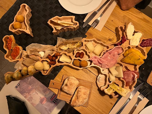 Ristorante, pizzeria, bar 100% italiano. Una experiencia gastronómica para descubrir los sabores regionales italianos en tablas con forma de Italia
