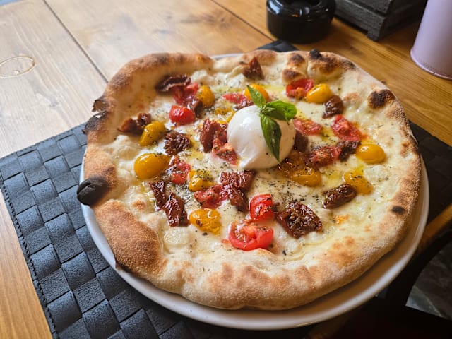 Tomate, rücula, mozzarella, atün, aceite y orégano