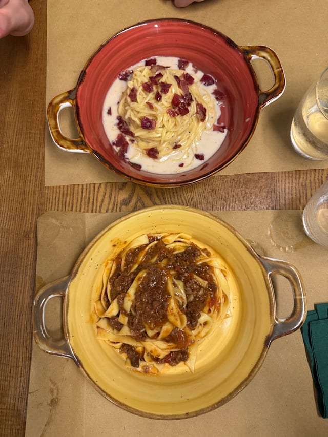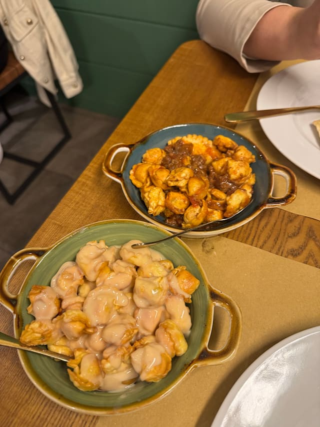 Tortellini bolognesi fritti con crema di parmigiano o ragú