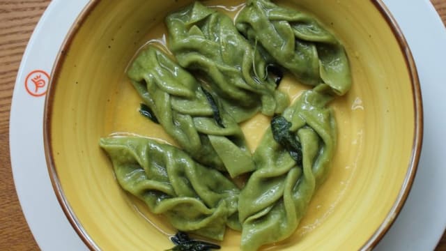 Treccia piacentina verde ricotta e spinaci con burro e salvia