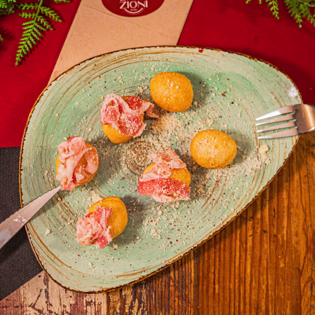 - Seis piezas fritas, crujientes por fuera y suaves por dentro. La pureza de la cacio e pepe, la grigia donde el guanciale aporta profundidad y carácter y la carbonara, cremosa y envolvente. Una progresión de intensidad y tradición