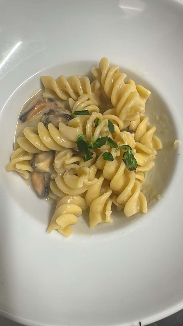 - La corposità dei fusilloni si sposa con la delicatezza dei fagioli di pigna, tipici della tradizione ligure, trasformati in una crema vellutata che profuma di terra e autenticità. A completare il piatto, i muscoli – saporiti e carnosi – che portano il respiro del mare. Un incontro armonioso tra due anime liguri: la montagna e la costa.