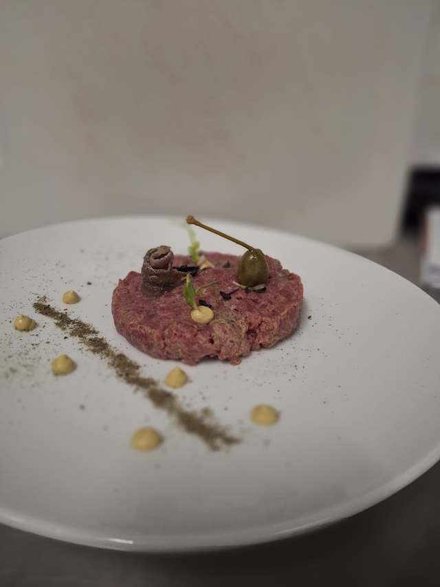 - Battuta di fassona: la purezza della carne piemontese incontra l’eleganza dei dettagli