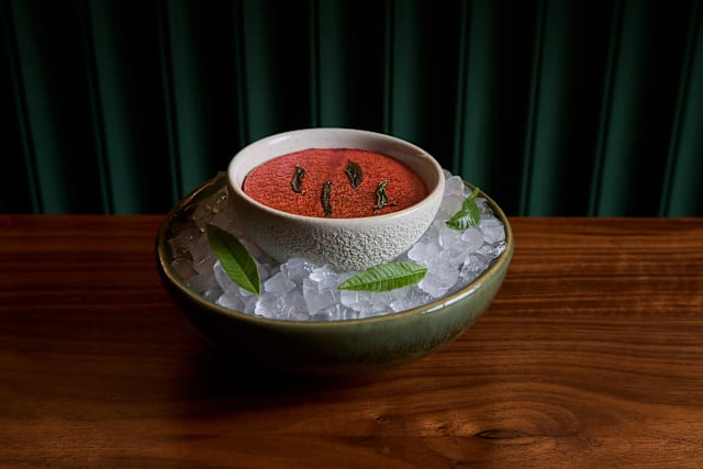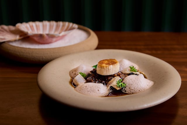 - Rebentos de chia | cebola | trufa caldo de “composto” | yuzu | trufa