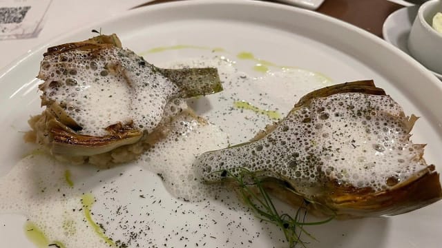 - Carciofo,spuma di pecorino e caffè in polvere