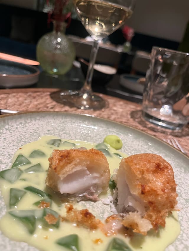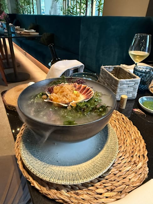 4.5/10The concept is like in the communist world: each table has to choose the same dishes. When you order not a tasting menu but starter & main dish, everything is served at the same time. Scallops served, clearly from deep-fried, chopped...instead of whole or sliced.
