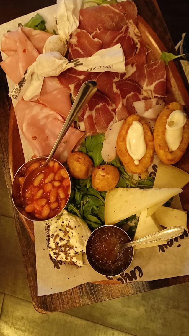 Baguette artigianale alla rapa rossa con scamorza e salsiccia di cinta senese squagliata in salsa cimichurri e cicoria ripassat