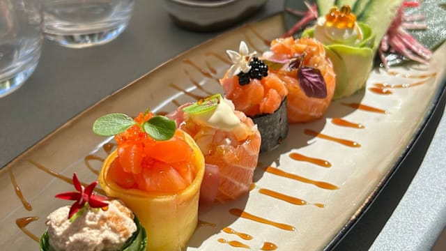 Saumon, thon et daurade marinés, concombre, cébette, sésame, riz vinaigré