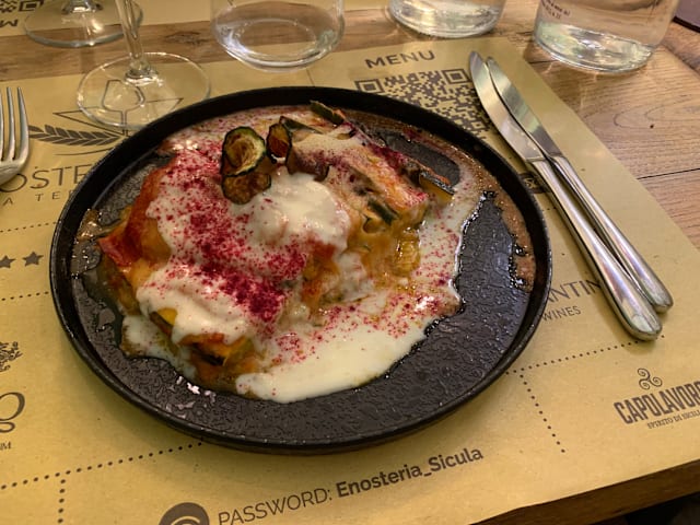 9/10High quality dishes. Traditional with a creative twist. Brilliant. Amongst an huge selection of restaurants all seemingly offering virtually the same menu, this restaurant is a superb dining option. Highly recommended. I expected more enthusiastic wine service as the wines on display were a very impressive collection. Us tourists do not necessarily know what’s great in Sicily. We are open to be impressed. I felt it was a missed opportunity. I felt the QR code menu, (they are everywhere on the island) don’t allow the servers to engage with guests. I certainly could have, and would have, indulged in more of what Enosteria Sicula had to offer if the servers engaged with me.