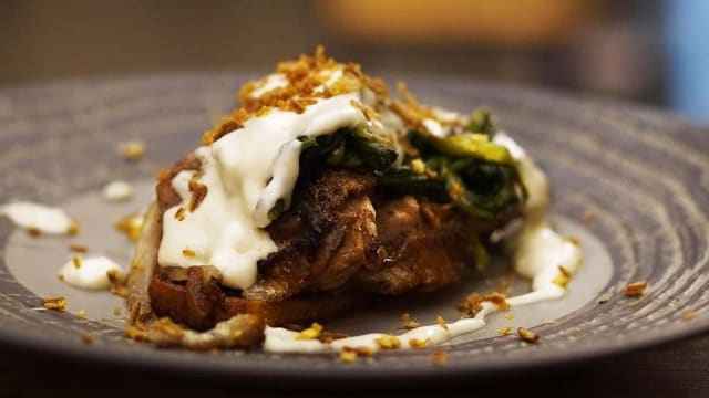 9.5/10Great cousins that merges traditional food with creative twists perfectly! The fish was very fresh and the tastes balanced. The cellar offered plenty of great local choices. The staff was super kind and spoke great English.