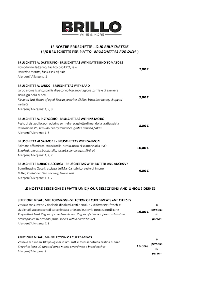 9.5/10This is a wonderful neighbourhood enoteca in a very central location. The quality of the wine and the taglieri is outstanding. The service is very friendly and great care is taken to give diners a description of the wine and food. The seating in the front of the restaurant is more comfortable than in the back, where it feels a bit cramped. I highly recommend a visit to Brillo when in Palermo.