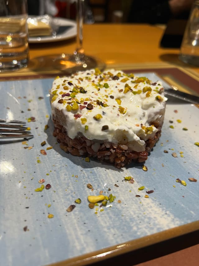 10/10It was in a small street. The place isn’t big, and has terassa. The waiter is great, he recommended a very tasty red wein to the meal. For dessert we tasted the cannolo Siciliano, I recommend it everybody.