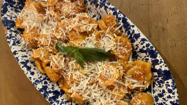 Orecchiette fatte a mano con salsa di pomodoro fiaschetto,cacioricotta e basilico.