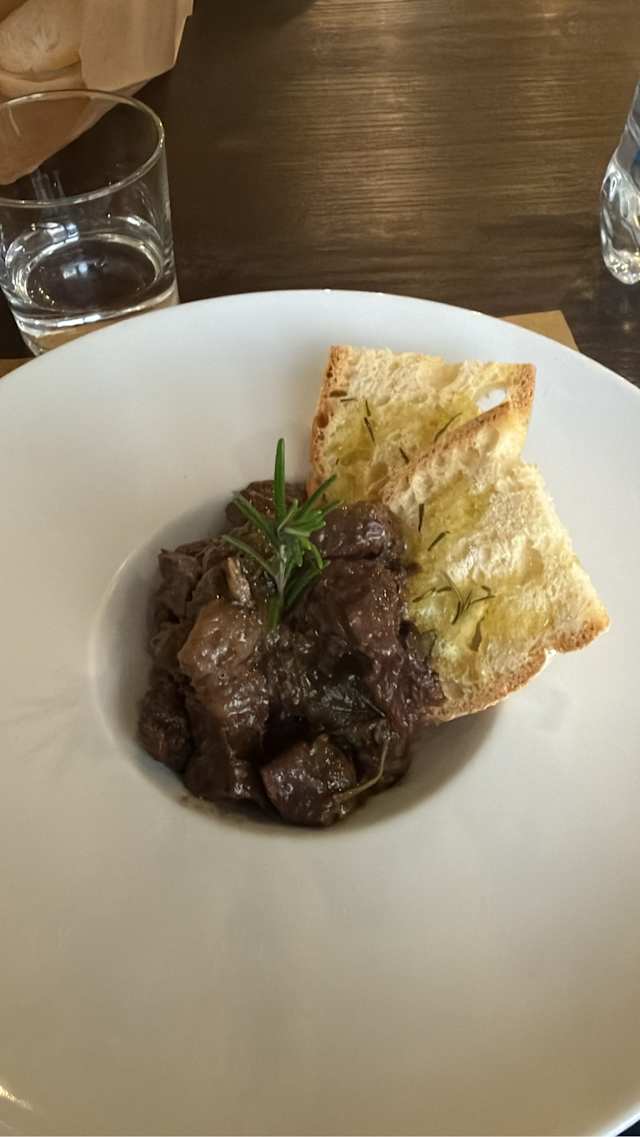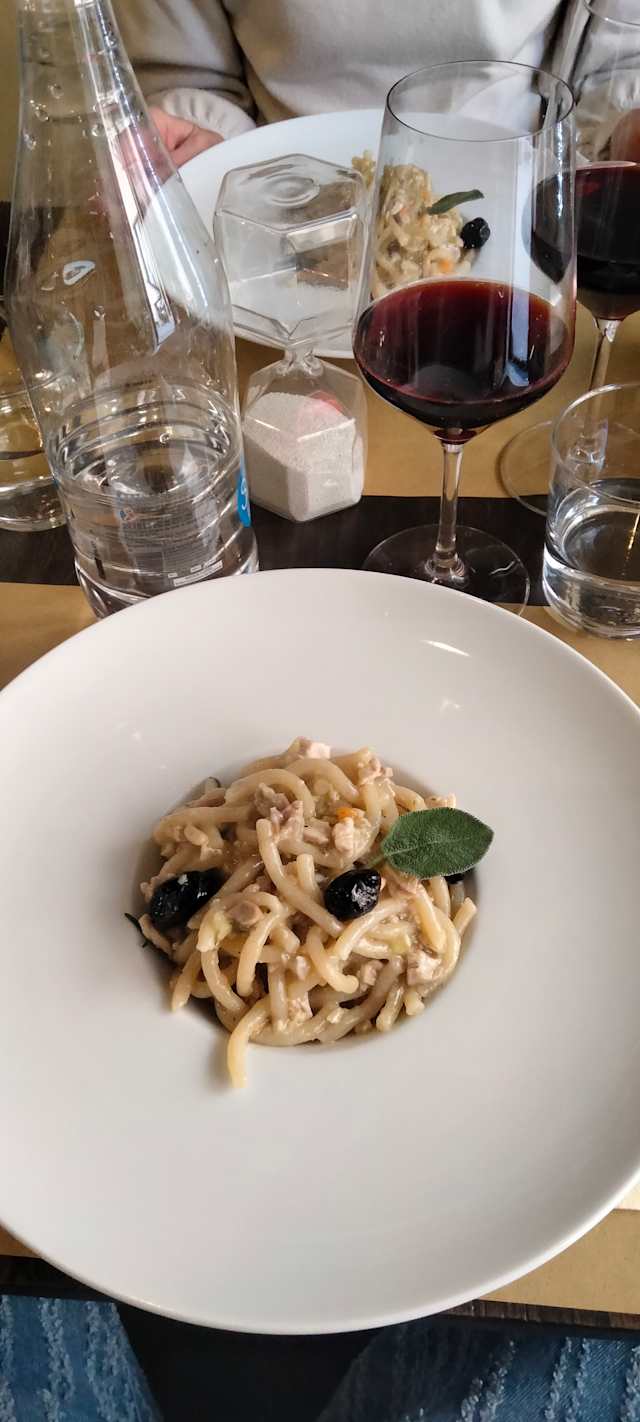 - Pici di Monteriggioni con ragù bianco di coniglio, pinoli e olive nere al forno