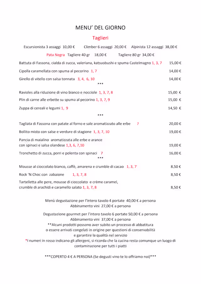 Piatti della tradizione e non solo, selezione di salumi e formaggi,ampia carta dei vini sia in bottiglia che al bicchiere.