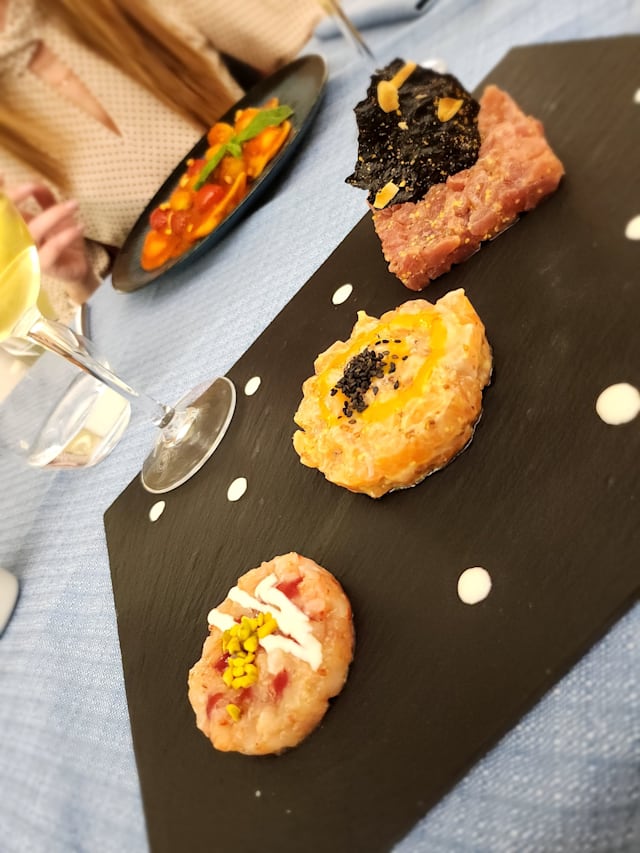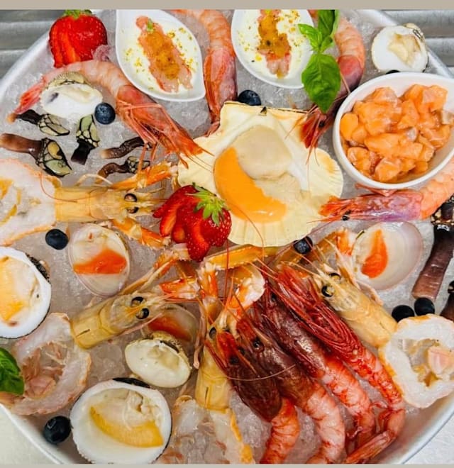 Gamberi, ostriche, scampi. Percebes, fasolati, tartufi, capasanta e cruditè di tartare