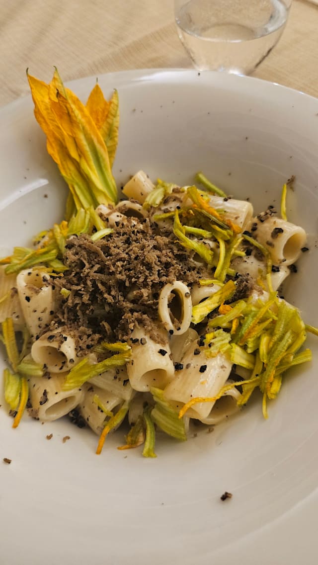 Con mazzancolle, fiordilatte, salsa zucchine, tartufo nero estivo