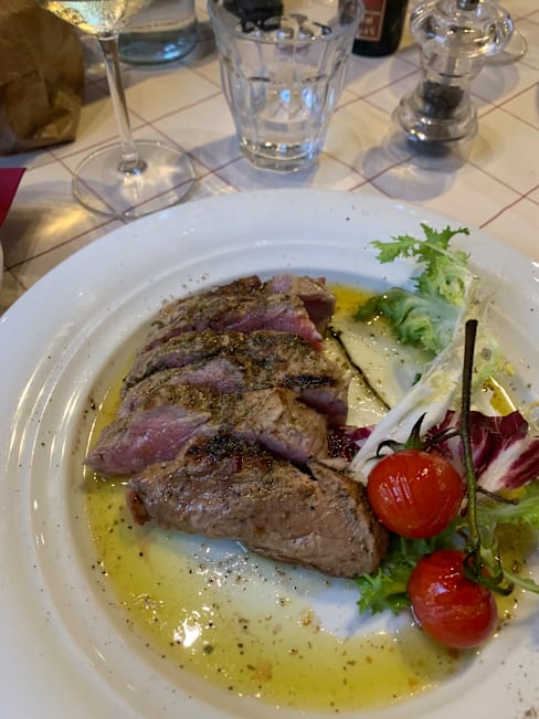 9/10We had booked for lunch but were over 2 hours late due to the rental car office being extremely overcrowded at Florence airport - this was not a problem here despite being full of patrons on a Saturday they understood & found us a table. We ere not disappointed with beautiful mushroom sauce on the steak, perfectly baked, small che all