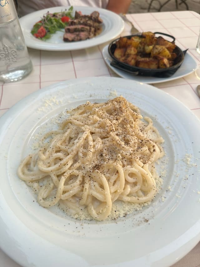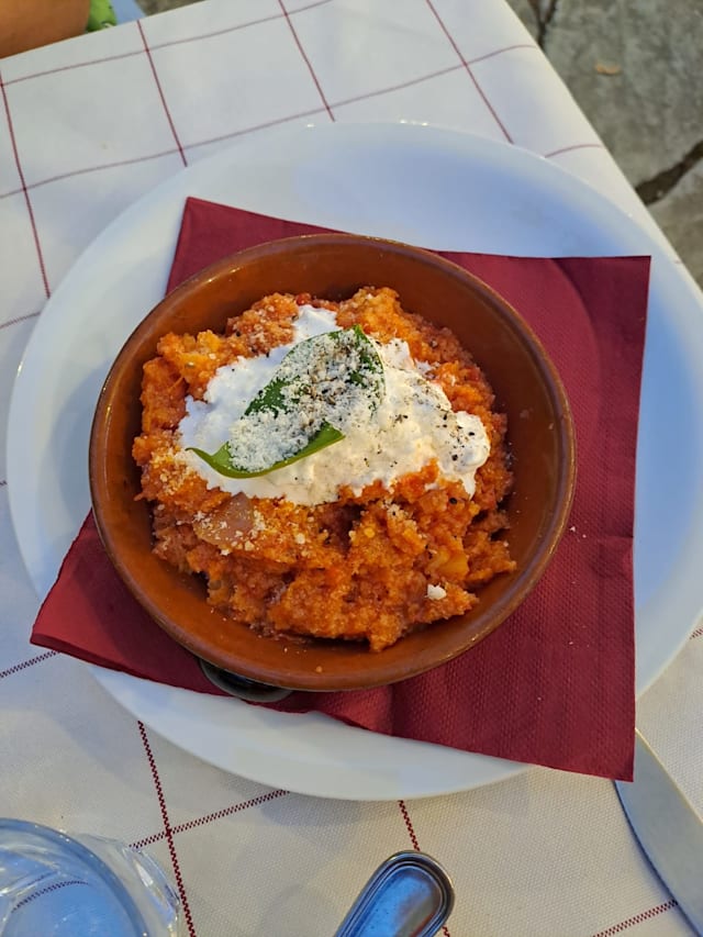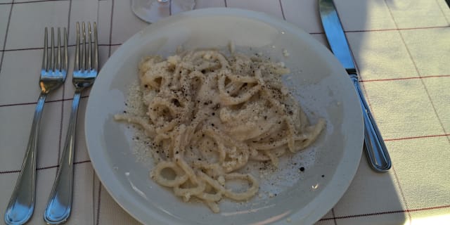 9/10We had a wonderful, mellow family meal on their beautiful terrace. The food was really good, simply prepared and tasty. The risotto with zucchini and it’s flowers was really outstanding. Lamb was good as was the bistecca. Their amazon with the grilled meats was just perfect - fruity but well balanced with really silky tannins and lots of body. All in all, a great family meal!