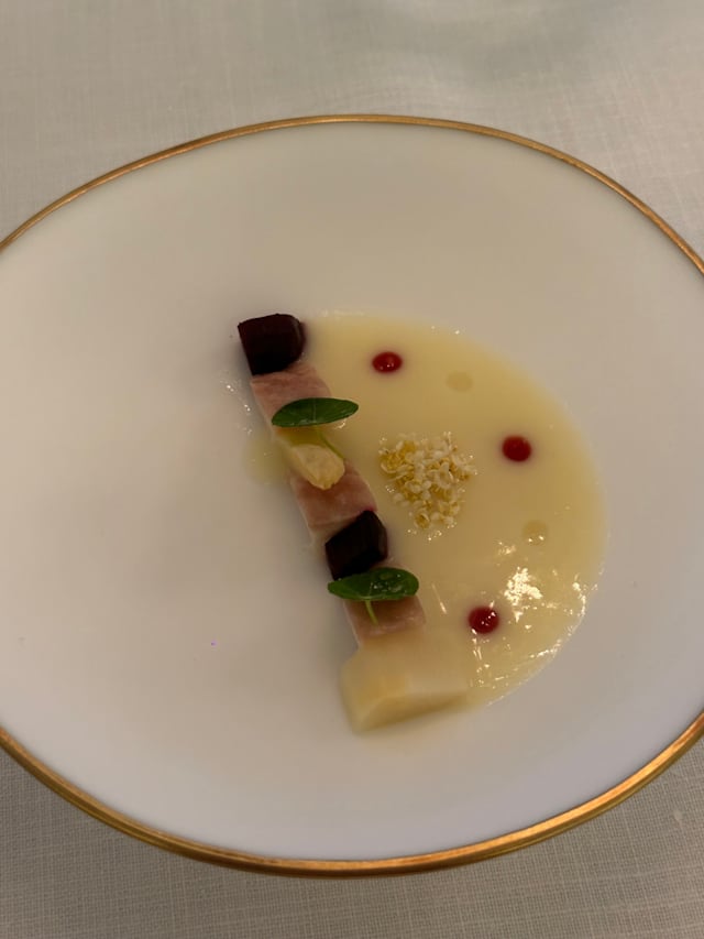10/10As for the Michelin starred place everything was perfect. We had the tasting menu in Jan 2022 and it was delicious, but we would appreciate maybe more variety. Some of the dishes were composed of similar ingredients. All delicious of course. Service was impecable. Very small and cozy place. We had a chance to stay at the hotel as well so it was a nice perk to eat right at the hotel restaurant. The bottle of wine was an excellent touch. Once they update the tasting menu for the new season we will come back for sure.