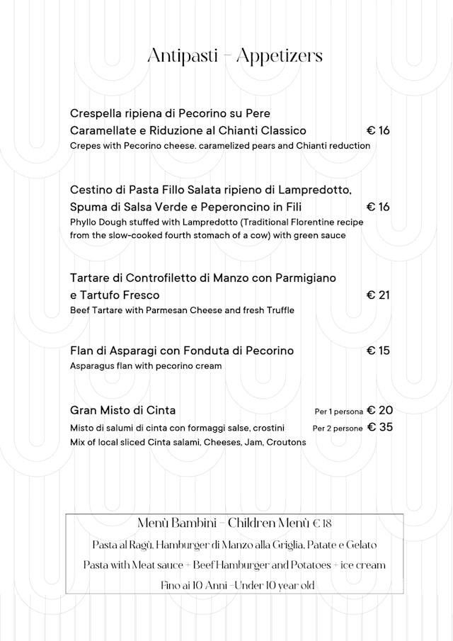 10/10Good classic Tuscan, high quality meats and homemade fresh pasta! A treasure for traditional food!