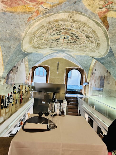 10/10A wonderful wine restaurant. A large selection of wines and friendly staff. Our dinner was wonderful, with excellent wines offered with each course. The grappa was a perfect ending to the evening. I'd especially like to mention the wonderful frescoes on the ceiling. I highly recommend it