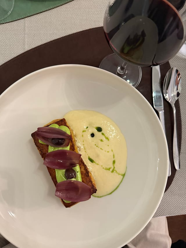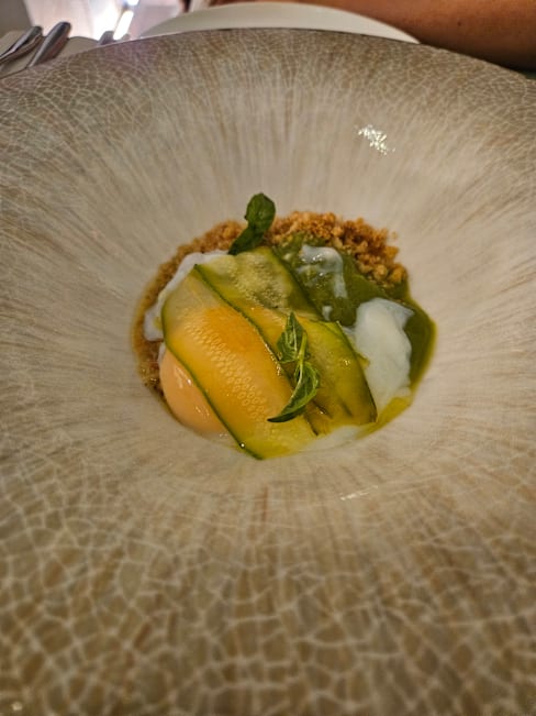 6.5/10My companion & myself are wine lovers & love good food perhaps even more . But we were so disappointed with our dinner last evening. Nothing was as good as it should have been. My stuffed zucchini flower starter being coated in a meanly- thin batter too tough to cut readily with a knife, unforgivable. My husband’s housemade superfine pasta looked lovely, but was no match for the robusta ingredients served with it… as a whole, it was texturally misjudged; though it tasted good. My bitterly disappointing “potato soufflé” main turned out to be a log of crusted mashed potatoes !!! - saved only by the luscious cheese ’zabaion’ , but let down by the trio of tough onion bits on top that had been marinated ( why bother ?) in the little known Italian red herby liqueur “ Alchermes” … overreached kitchen work & disaster menu translation. Wine management & table service excellent- all in a gorgeous setting..they couldn’t save the disappointment of unresolved food. Not recommended for food, sadly.