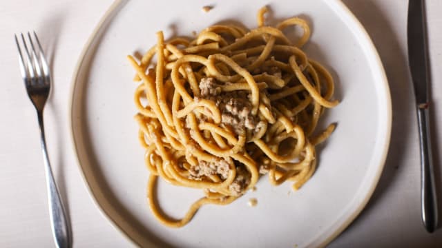 Spaghetti “verrigni” trafilati in oro alla carbonara di serafino