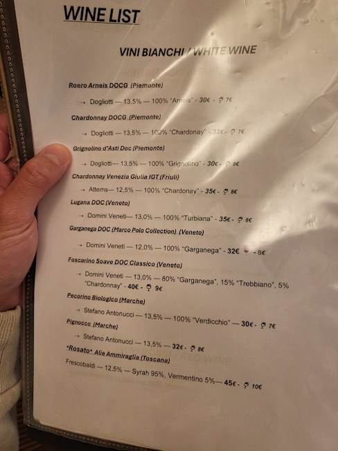 4/10Food: At full price I’d rate it 1/5, but with the 50% discount it becomes a 4/5 experience. The dishes weren’t particularly special, but at the discounted price it’s worth visiting. Without the discount, I wouldn’t recommend it. Drinks: The drinks felt overpriced. I expected higher prices since the discount doesn’t apply to beverages, but they were still too expensive for what they offered. Service: 1/5 The server was friendly at first, but lacked product knowledge and professionalism. I ordered Grignolino d’Asti from Dogliotti, and since it was listed under white wines, I asked if it was red or white. He insisted it was white. Later he brought a sparkling Dogliotti wine, insisting it was Grignolino d’Asti, and became annoyed when I questioned it. It felt like he didn’t want to double-check. Overall: Good value only with The Fork’s 50% discount. If you want to enjoy food with proper wine or drinks, I wouldn’t recommend this place.
