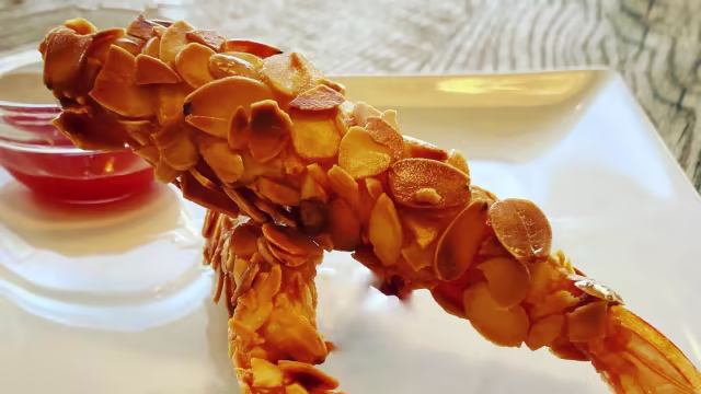 - Camarões fritos envoltos em massa crocante