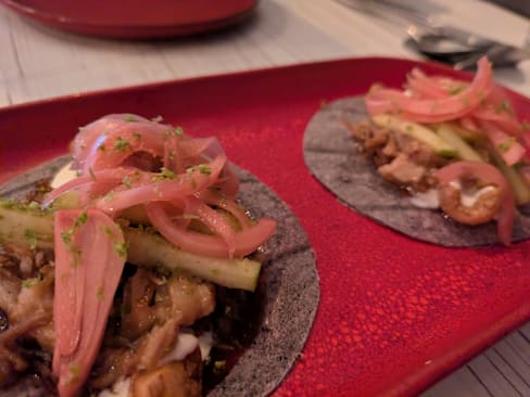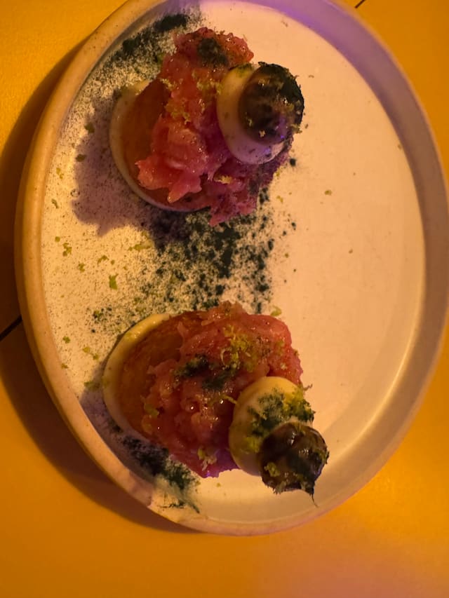 10/10+4We stayed in Tavira for a few days and decided to drive to Faro for dinner here because of the reviews we read, and their neon sign caught my husband's attention lol. We were NOT disappointed. This is a tapas-style (petiscos) restaurants which is the way we love to eat. The plating, the flavors, and the textures were all so incredibly unique. All were created by the chef, who was the only one working in the kitchen. Then there was the service, the only one serving was Rodrigo, who's also part owner, he was also the sommelier and was so knowledgeable about all the unique wines he served us. We let him just pour for us to go along with our dishes and couldn't have been happier with the selections and we actually import wines from Portugal to the USA! The wine selection and the food there are top notch and so different than other restaurants so get ready to have an experience. We couldn't recommend this place more and can't wait to go back!