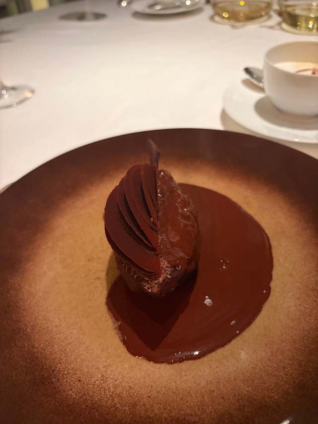 - Compression de topinambour et macadamia, jus des arêtes rôties à la truffe noire.