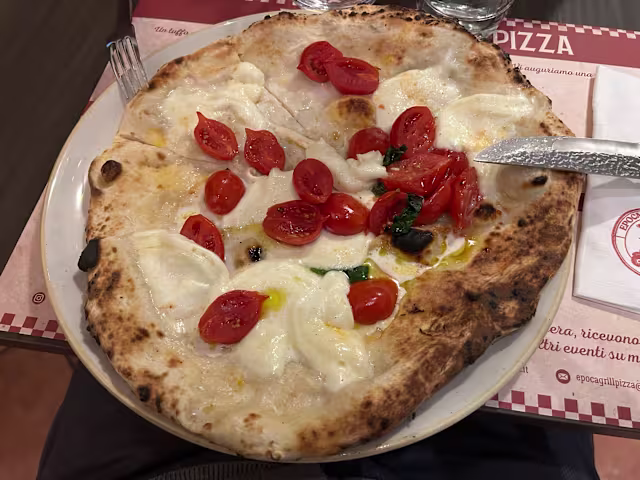 - Pomodoro, mozzarella fior di latte campana DOP, acciughe