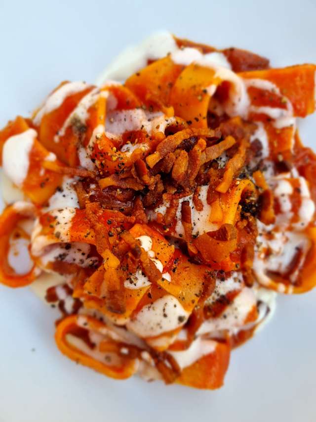 - Maccheroni crema di zucca, gorgonzola e salsiccia
