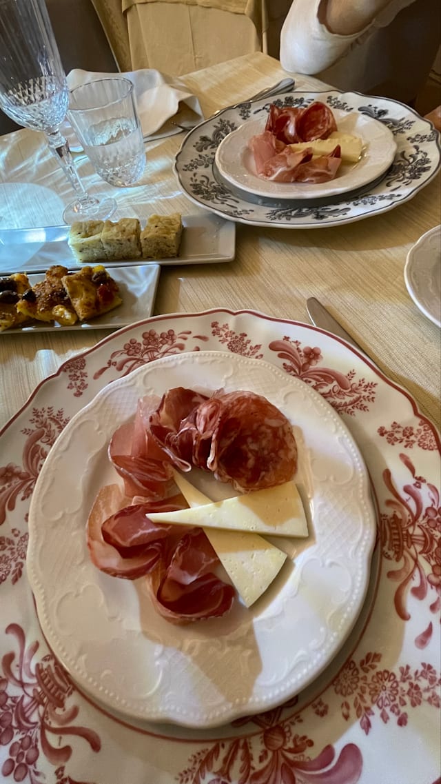 Selezioni di salumi di fattoria al coltello, formaggi locali