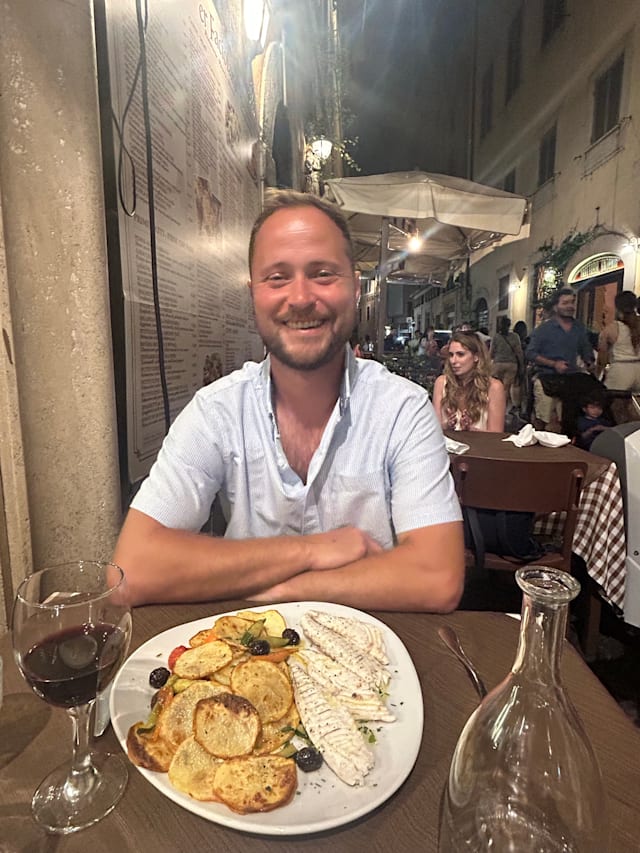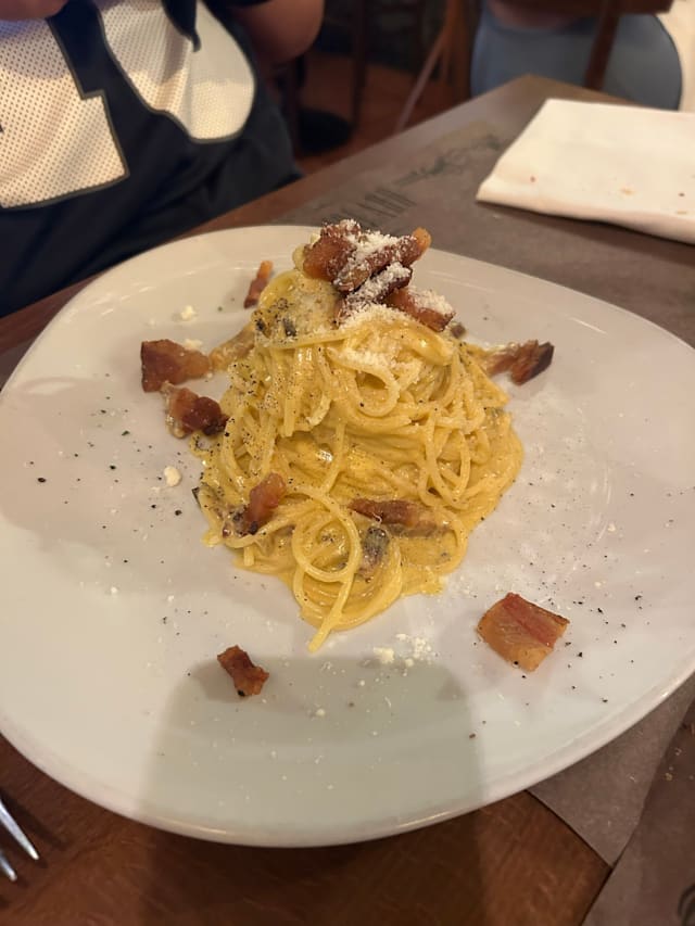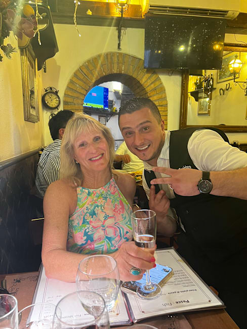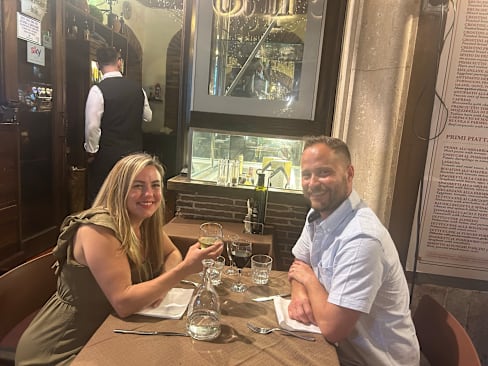 10/10Oh my goodness! Amo Roma, migliore esperienza di ristorante! Booked via Fork to visit this restaurant. I originally took a photo of the restaurant 9 years ago while passing during a tour of Rome with a cruise liner saying I wanted to go there one day. My husband bought me back for my 40th Birthday this June and I am so glad we came here rather than anywhere else! Just round the corner from the Pantheon and not too far from the Trevi fountain, we sat out in the warm summer evening down a cobbled restaurant lined street with flowers, ambient lighting, and buzzing with life. Accordions playing and the host Daniel and his waiters were attentive and charming, treating us like family. The food was exceptional, I had a homemade spaghetti in a cream and truffle sauce and my husband the sea bass from the specials board, de boned in-front of us. Absolutely delicious at a reasonable price right in the heart of Rome. A “happy birthday” serenade and dessert from the owner. Made my 40th birthday!