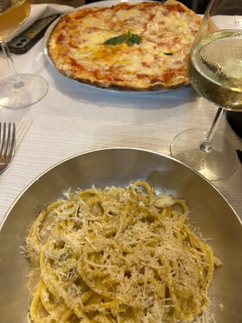 9.5/10Amazing pasta dishes. The bruschetta pomodoro was a great start. Simple and delicious. The ametriciano, cacio e pepe, and pomodoro is prepared perfectly. Limoncello nice finish. Loved it so much we had to come back again on our last night.