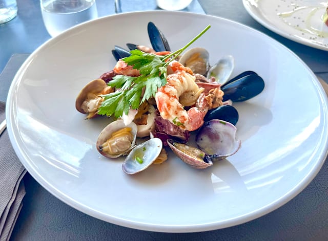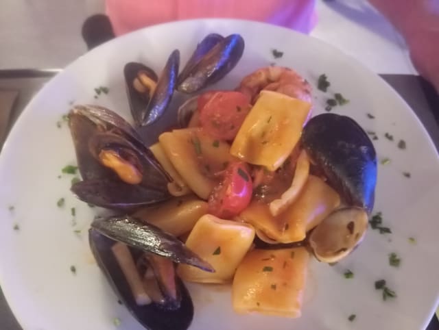 - Pasta fresca, vongole, cozze, gamberetti, scampi, calamari, prezzemolo, olio evo